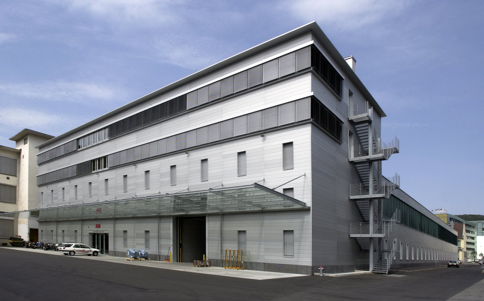 fsp: Zwei lange Hallen enthalten die Lager- und Betriebsräume. Der vor die westlichen Schmalseiten gestellte Kopfbau für Administration und Schulung bildet den Auftakt der Gesamtanlage. Seine prägnante Front bezieht klar Stellung zum hier entstandenen städtischen Raum. Nicht ganz zufällig erinnern die zwei hochliegenden, mit durchgehenden Fensterfronten versehenen Bürogeschosse an die Kapitänsbrücke eines Frachtschiffes, die dahinterliegenden Werkhallen an dessen Laderaum. Die gestalterische Sorgfalt und Präzision der Details ist eine Referenz an die kostbaren Hightech – Güter im Innern.