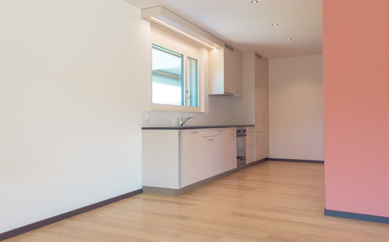 fsp: In einer ersten Etappe werden die bestehenden Alterswohnungen ersetzt. Eine Tiefgarage mit 32 Miet-Parkplätzen verbindet die Wohnhäuser. Selbstverständlich wurden im fsp-Projekt alle behinderten- und altersspezifischen Bedürfnisse berücksichtigt. In der tat scheint der fsp-Lösungsansatz so mustergültig zu sein, dass er anlässlich des kantonalen „60plus-Forums“ als Musterbeispiel präsentiert wurde. In einer zweiten Etappe werden die beiden Wohnhäuser integrativ via Überarbeitung des Alters- und Pflegezentrums zu einem regionalen Alterszentrum vervollständigt.