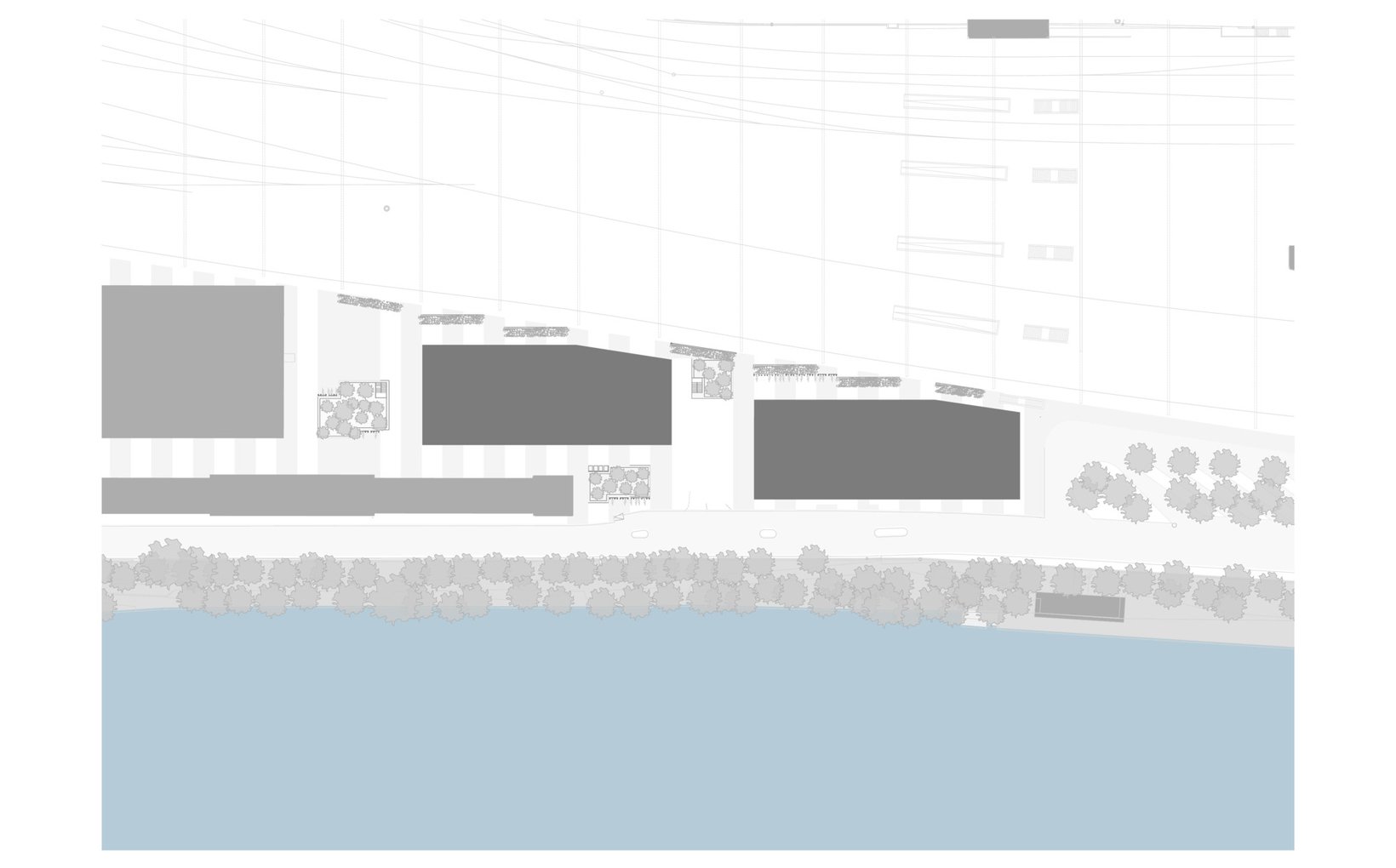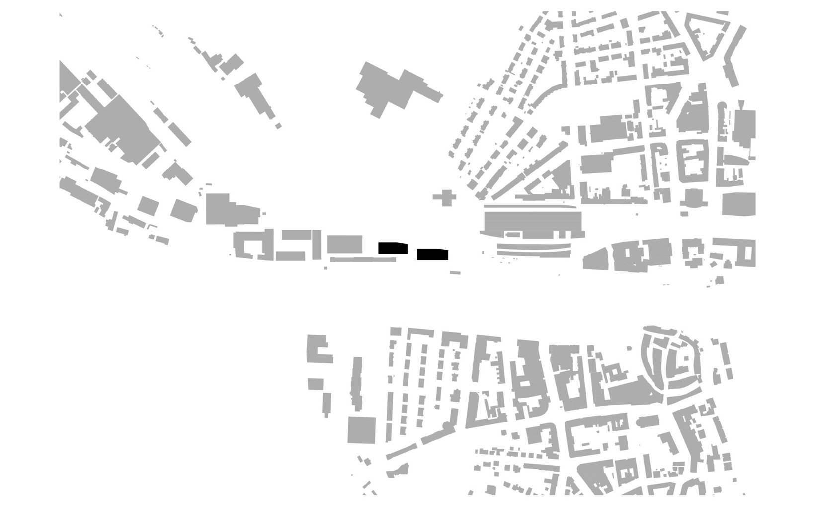 Problemstellung: Das zukunftsorientierte Entwicklungsgebiet zieht sich in die Länge und beinhaltet Historie (Gebäude L1 bis L5) und Zukunft. Das Baufeld 2 stellt jedoch die nur einen Teil der kommenden Bebauungen dar. Abgeschlossen wird die Entwicklung mit den Bauten im Norden des Gestaltungsplanperimeters.