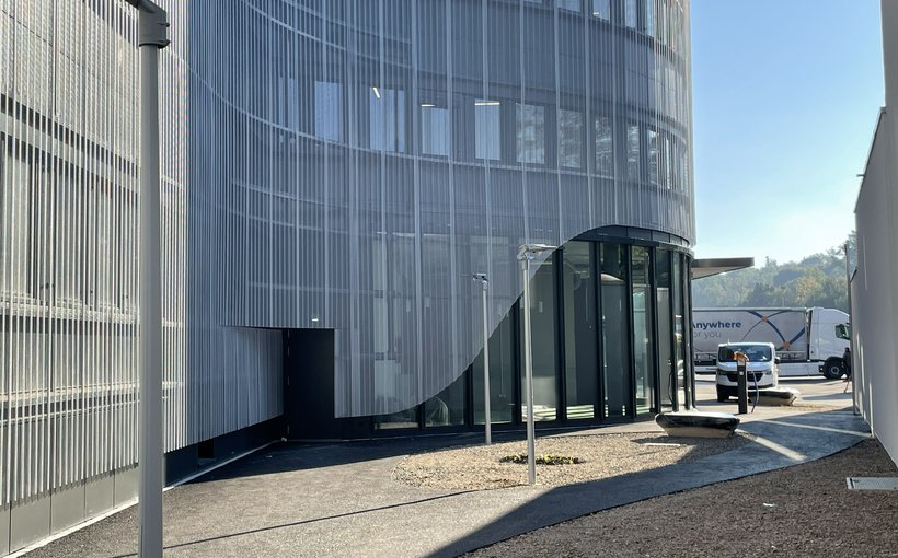 fsp: Die zweischichtige Fassade des Gebäudes unterstreicht seine funktionale Ausrichtung und unterstützt das hochwertige Erscheinungsbild, welches zur zukünftigen Entwicklung des Gebiets beitragen soll. Die Aussenhaut aus perforiertem Blech betont die Einheit des Gebäudevolumens und hebt die Adressbildung hervor. Im Inneren bietet das Logistikzentrum Flächen für Büro-, Lager- und Gewerbenutzungen sowie eine Einstellhalle für verschiedene Fahrzeugtypen. Der Gebäudekomplex ist so strukturiert, dass er flexible Büro- und Gewerbeflächen bietet, die an verschiedene Mieterbedürfnisse anpassbar sind. Ein Gewerbelokal im Erdgeschoss dient der lokalen Gemeinschaft, und eine Dachterrasse im vierten Stock bietet einen Rückzugsort für die Mitarbeiter. Ökologisch wird das Gebäude durch eine lokale Fernwärmeversorgung und eine hauseigene Photovoltaikanlage betrieben, die es ermöglichen, den Minergie-P-Standard für nachhaltige Gebäude zu erreichen. Dieses Konzept sorgt für eine ausgezeichnete Energieeffizienz durch die Kombination von Wärmedämmung und der Nutzung erneuerbarer Energiequellen.