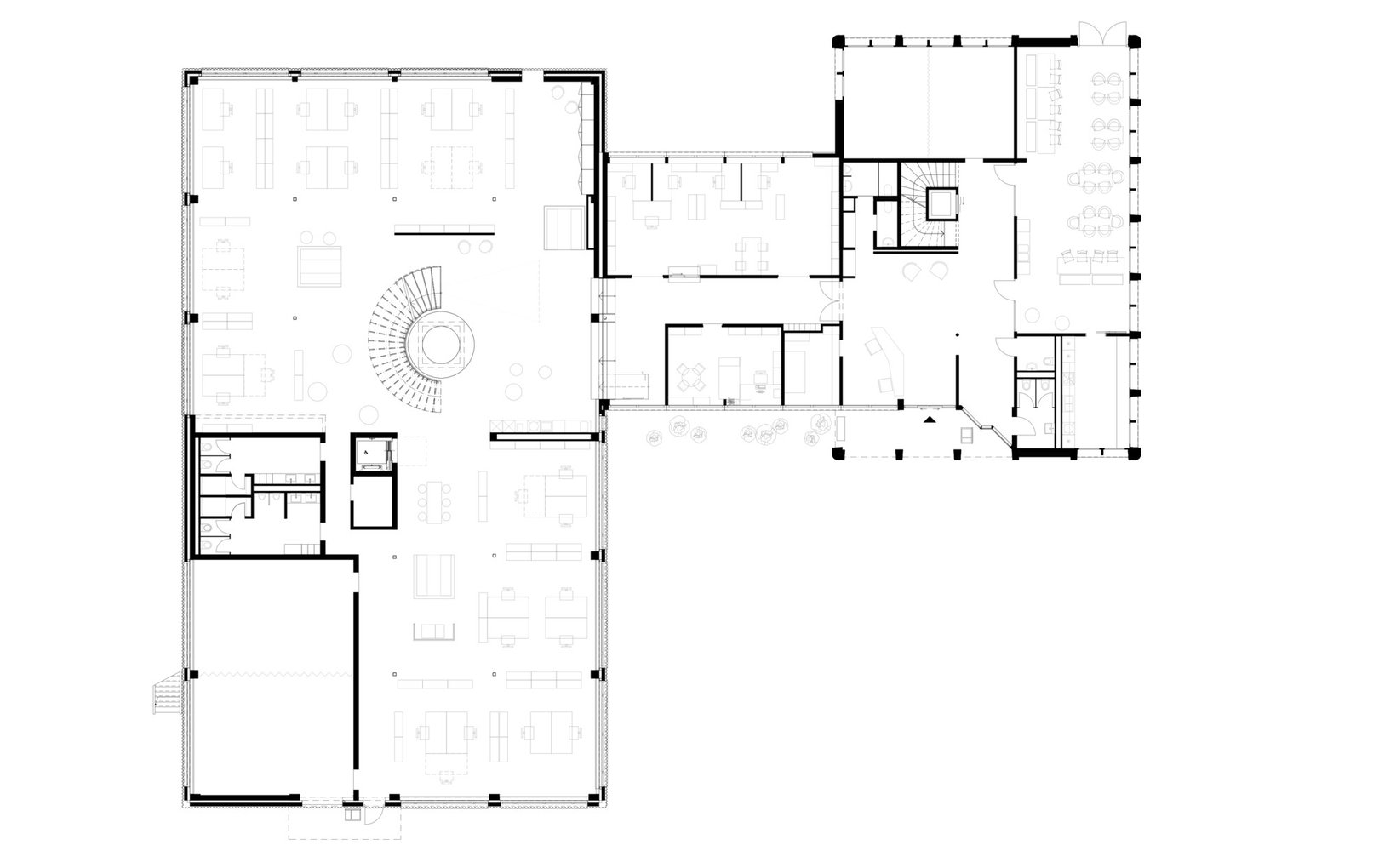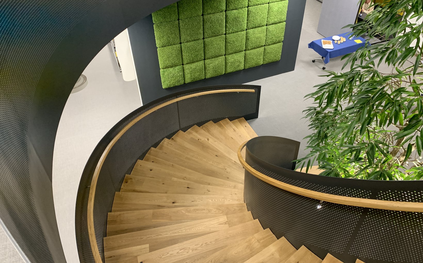 repräsentativen Wendeltreppe als zentrale Drehscheibe und Infostelle fungiert. In
