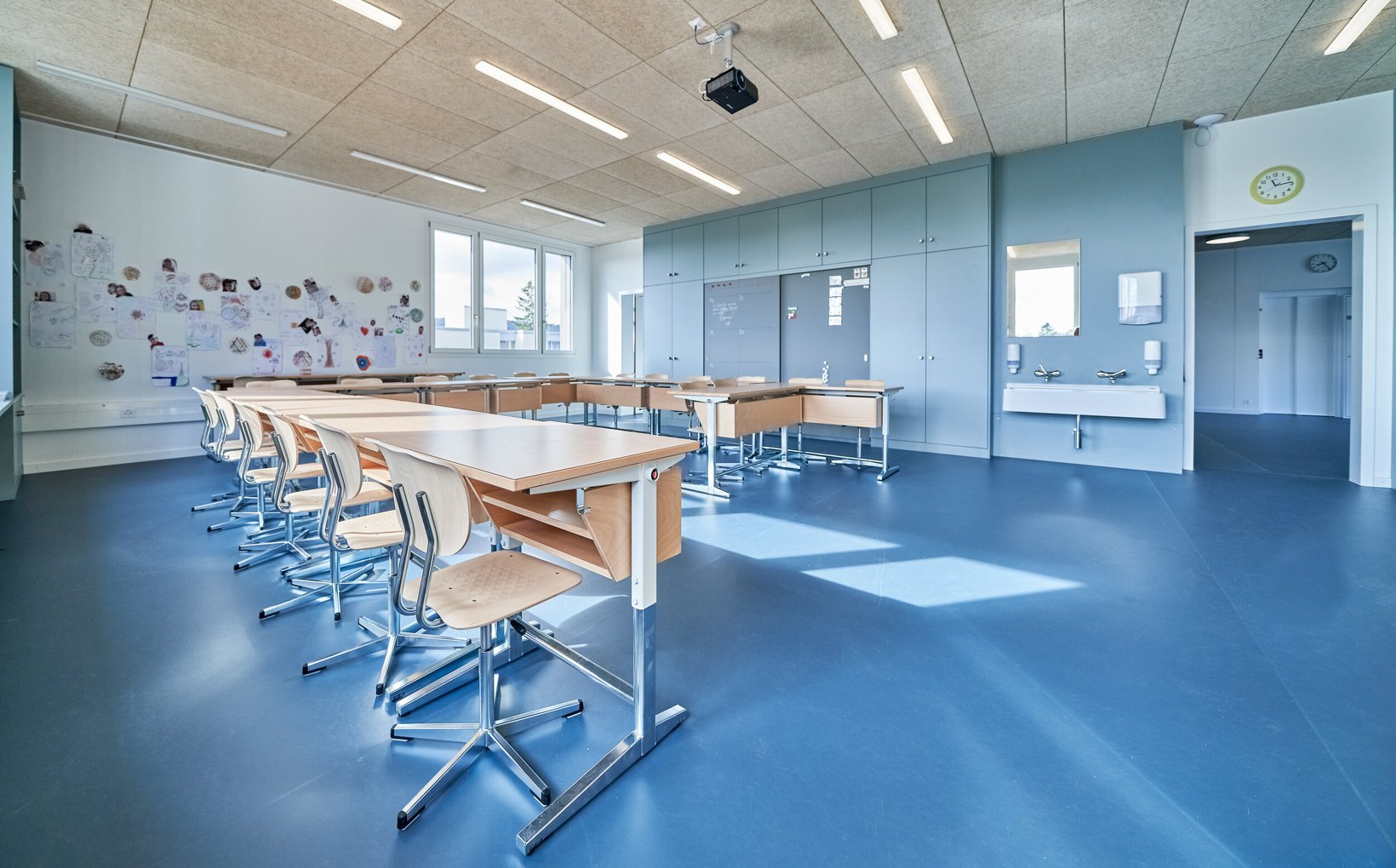 Ziel: Der Anstieg der Schülerzahlen der Primarschulgemeinde Geroldswil erfordert einen Neubau bestehend aus Singsaal, Mittagstisch und vier Klassenzimmern mit zugehörigen Gruppenräumen am Ort des bestehenden Singsaals. Die neuen Nutzungen sind ortsbaulich, architektonisch und funktional ideal in das dicht gewachsene Umfeld entlang einer Geländekante einzubinden.