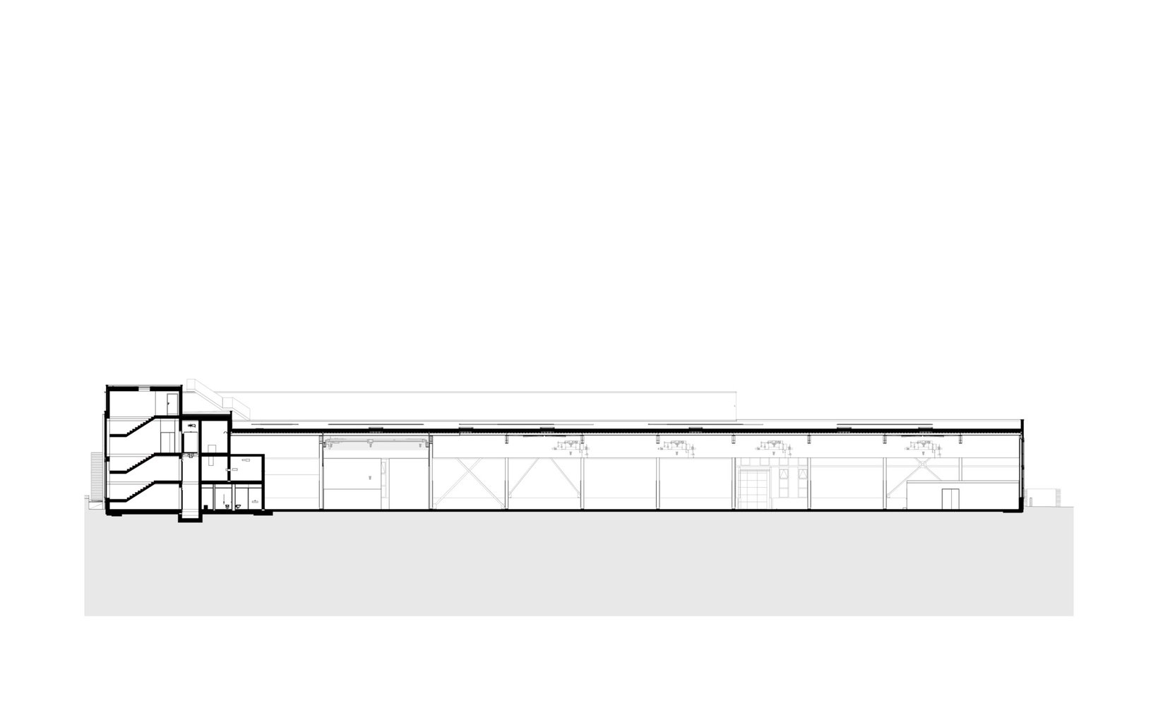 Problemstellung: Fertigungsstrassen, Lastenkräne und das Hochregallager geben die innere Struktur der Halle vor. Das Gebäude musste so konstruiert werden, dass die Fertigungshalle und insbesondere das Hochregallager möglichst frei von Stützen sind. Spannweiten von bis zu 20 m konnten durch Fachwerkträgern realisiert werden. Das Freispielen der lichten Raumhöhe von der Haustechnik bedurfte hohen koordinativen Aufwand, der bereits in den frühen Phasen an einem digitalem Gebäudemodell interdisziplinär erfolgte.