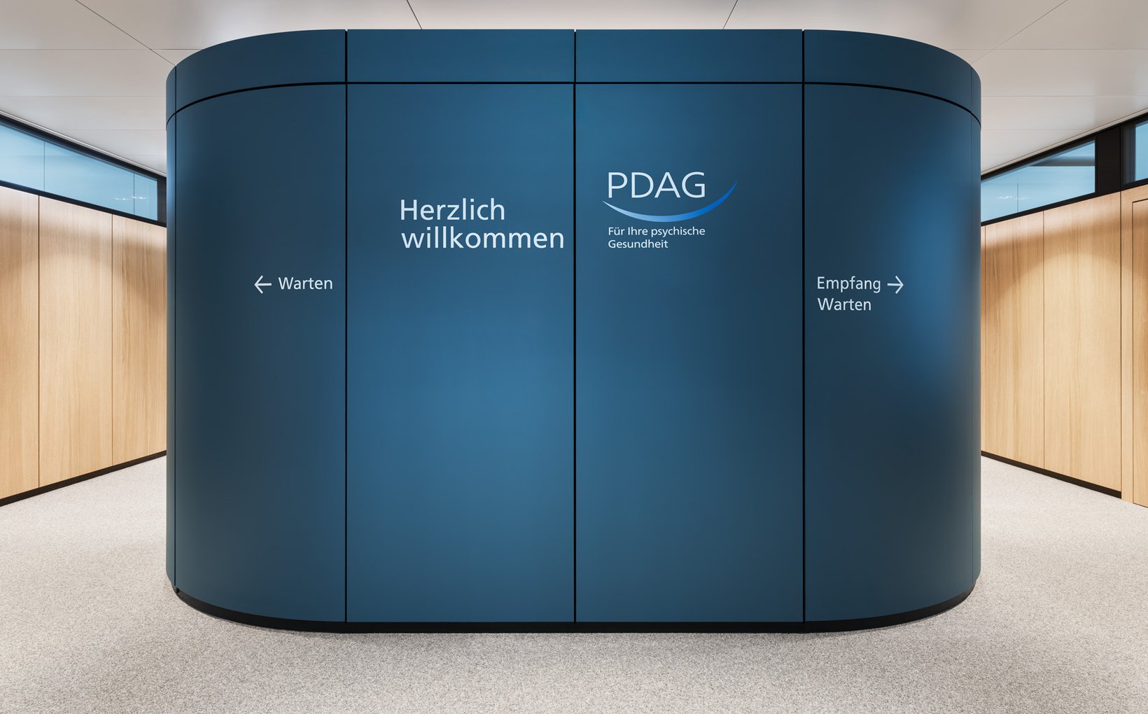 Problemstellung: Koordination der Nutzerbedürfnisse mit den strategischen Vorgaben des Verwaltungsrats hinsichtlich neuer Arbeitswelten vor dem Hintergrund der speziellen Anforderungen an Privatsphäre und eines vertrauten Umfelds für Patienten. Der Um- und Ausbau erfolgte parallel zur Generalsanierung des Bürokomplexes innerhalb des Zeitraums von 3 Monaten.
