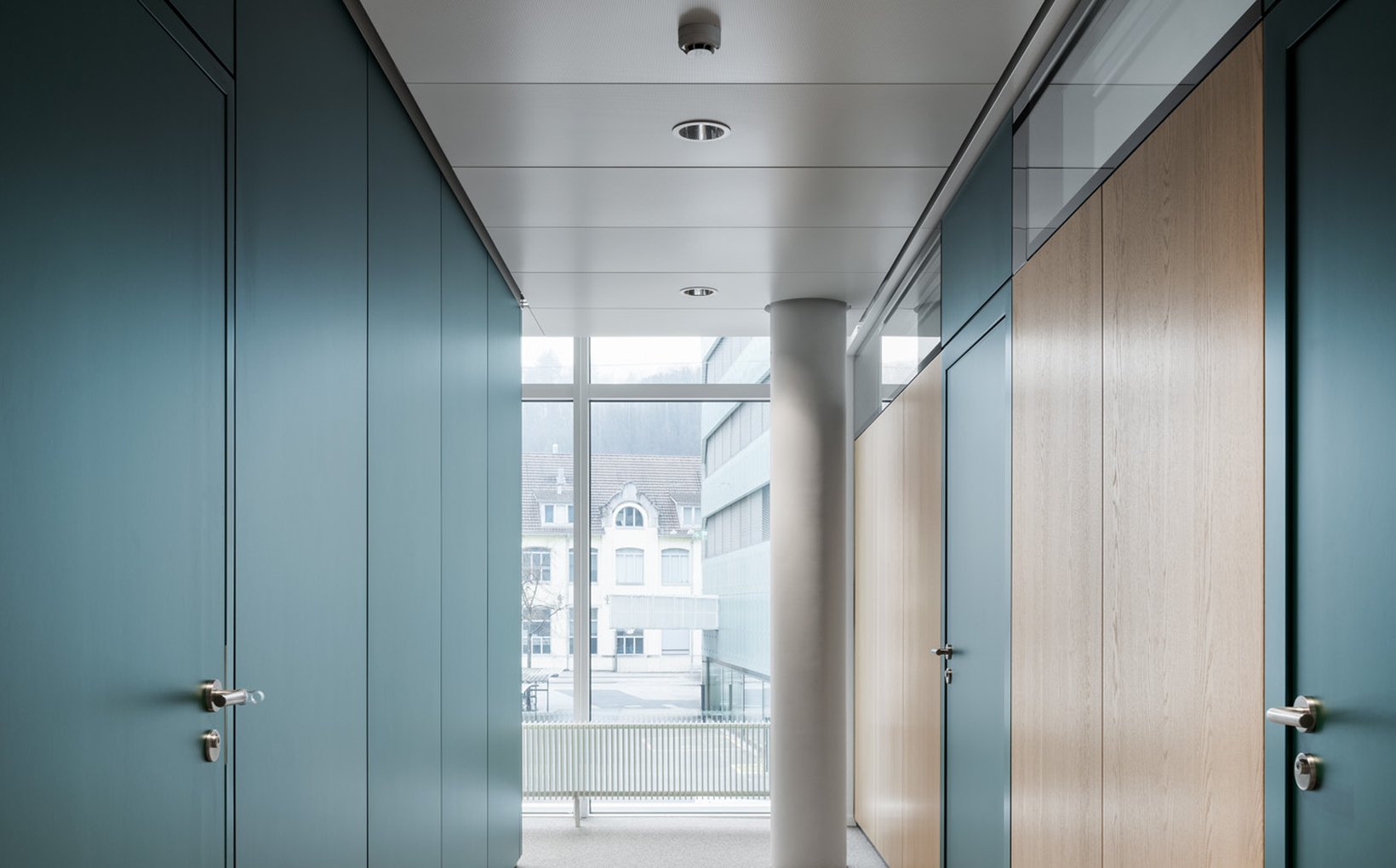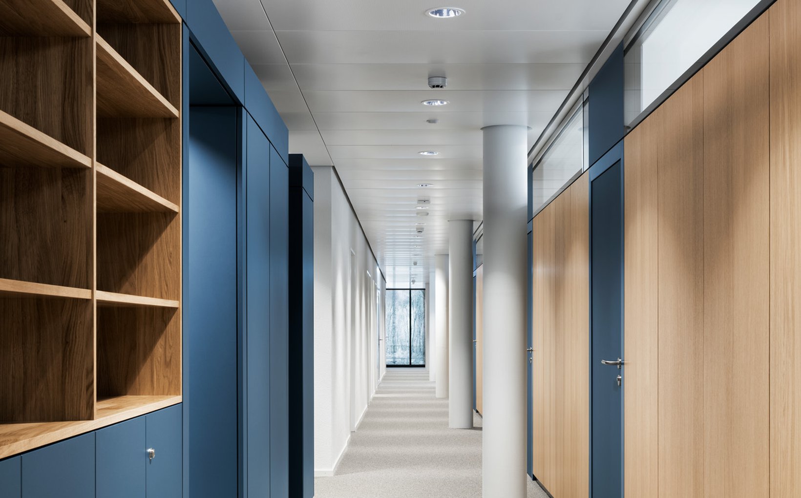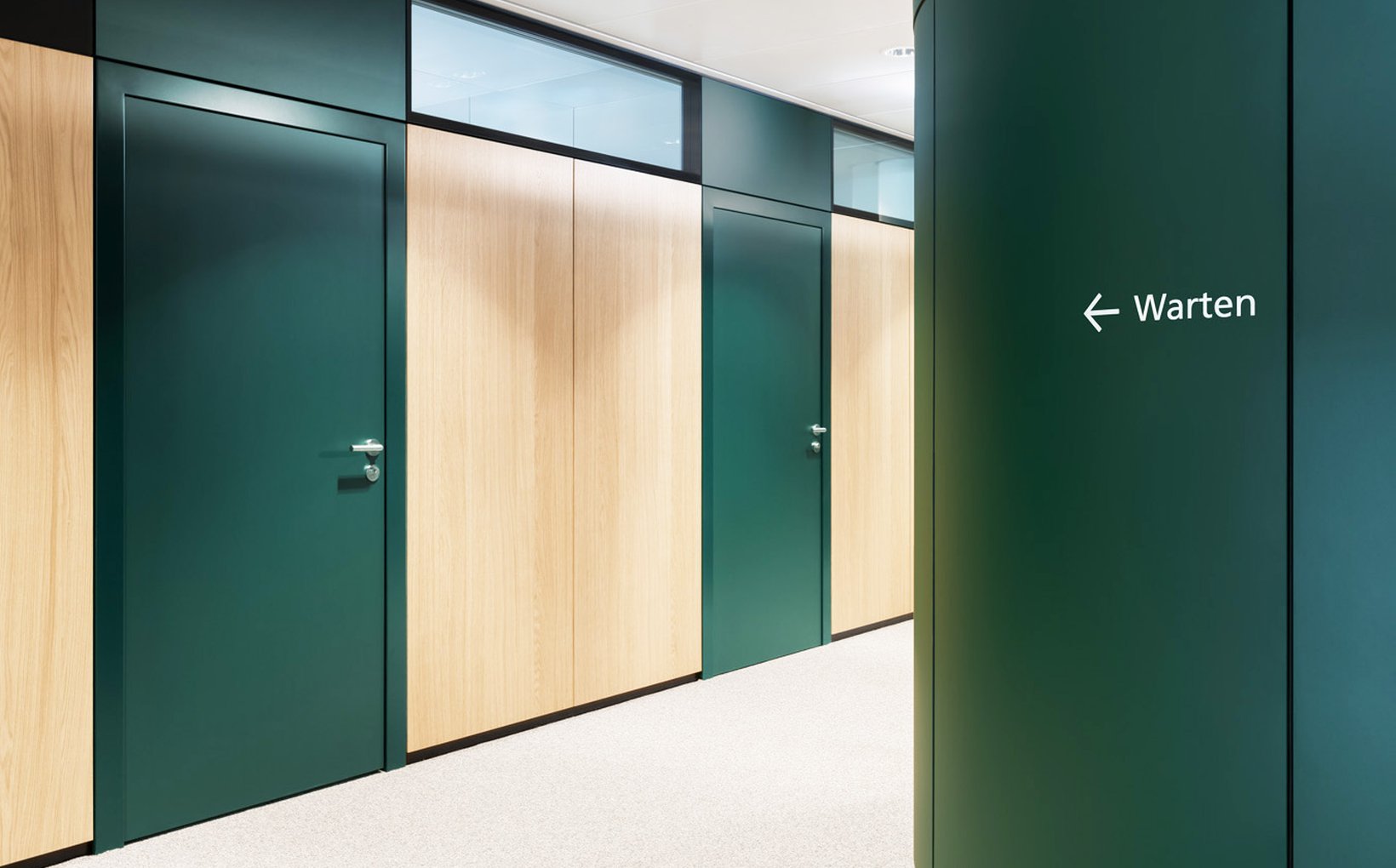 fsp: In Workshops mit Nutzergruppen wurden Rahmenbedingungen für die Ambulatorien im KONNEX entwickelt, um die Anforderungen des Verwaltungsrats zu erfüllen. Die Ambulatorien liegen auf zwei separaten Etagen im südlichen Teil des Gebäudes. Es entstand ein Raumkonzept mit Einzelbüros und optimaler Flächennutzung. Büros verschiedener Größen reihen sich entlang der Außenwände, während Warteräume und andere Funktionen im Kernbereich liegen. Ein gemeinsamer Aufenthaltsraum und eine verbindende Galerie fördern die Kommunikation. Individuelle Farben und Holzoberflächen bestimmen das Ambiente, während Oberlichter und Eichenholztüren für eine strukturierte und helle Umgebung sorgen.