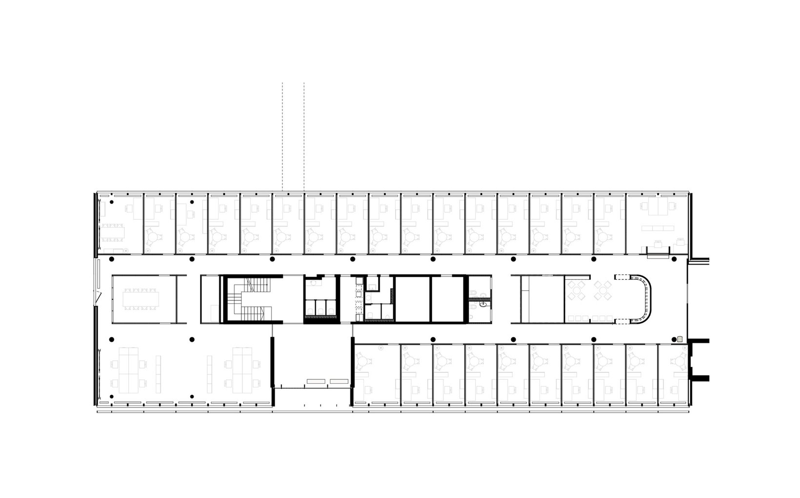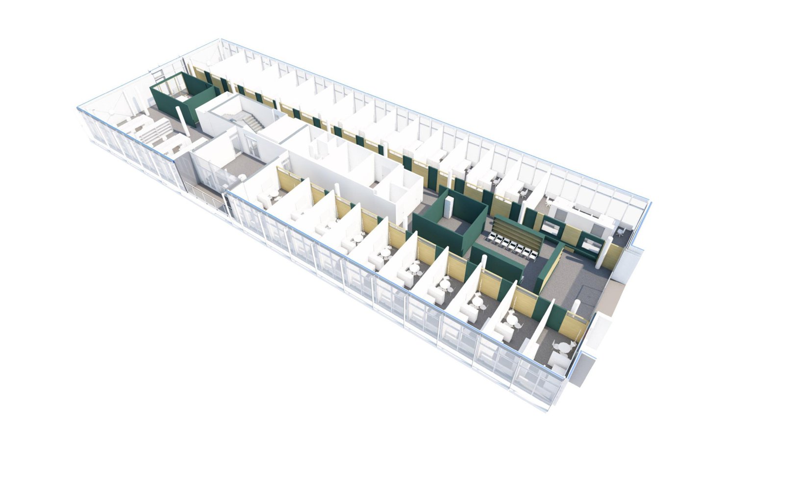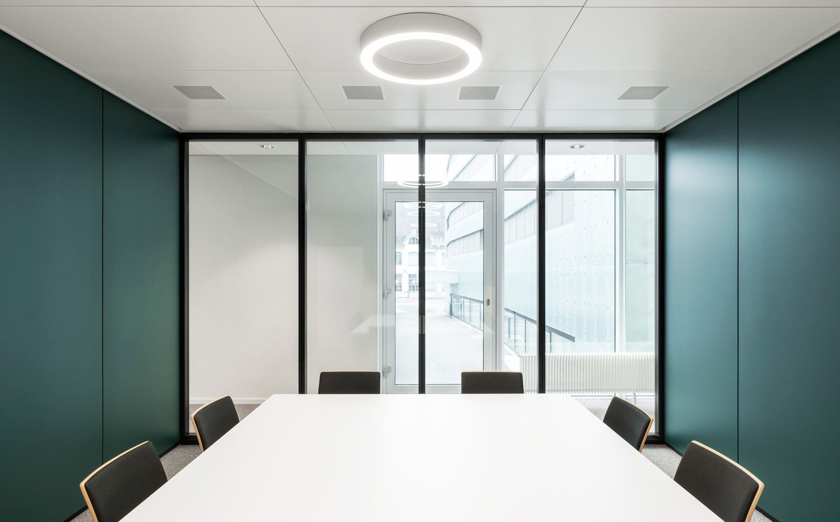 fsp: In Workshops mit Nutzergruppen wurden Rahmenbedingungen für die Ambulatorien im KONNEX entwickelt, um die Anforderungen des Verwaltungsrats zu erfüllen. Die Ambulatorien liegen auf zwei separaten Etagen im südlichen Teil des Gebäudes. Es entstand ein Raumkonzept mit Einzelbüros und optimaler Flächennutzung. Büros verschiedener Größen reihen sich entlang der Außenwände, während Warteräume und andere Funktionen im Kernbereich liegen. Ein gemeinsamer Aufenthaltsraum und eine verbindende Galerie fördern die Kommunikation. Individuelle Farben und Holzoberflächen bestimmen das Ambiente, während Oberlichter und Eichenholztüren für eine strukturierte und helle Umgebung sorgen.