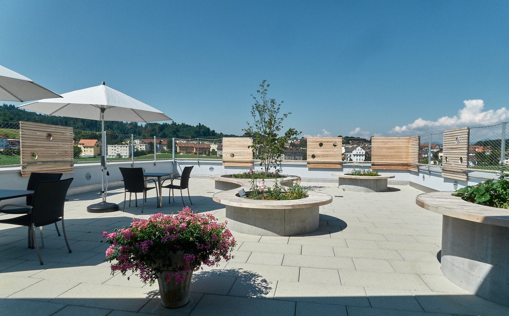 fsp: Die bisherigen drei Stationen wurden räumlich erweitert und personell leicht aufgestockt. Der Nachfrage entsprechend wird in Zukunft jedes der insgesamt 55 Zimmer zur Einzelbenutzung angeboten. Die Demenzabteilung wurde um einen Dachgarten ergänzt. Im Bestandsgebäude sind die Transportanlagen erneuert, die Räumlichkeiten der Administration erweitert sowie neue Gemeinschaftsräume für die Bewohnenden bereitgestellt worden.