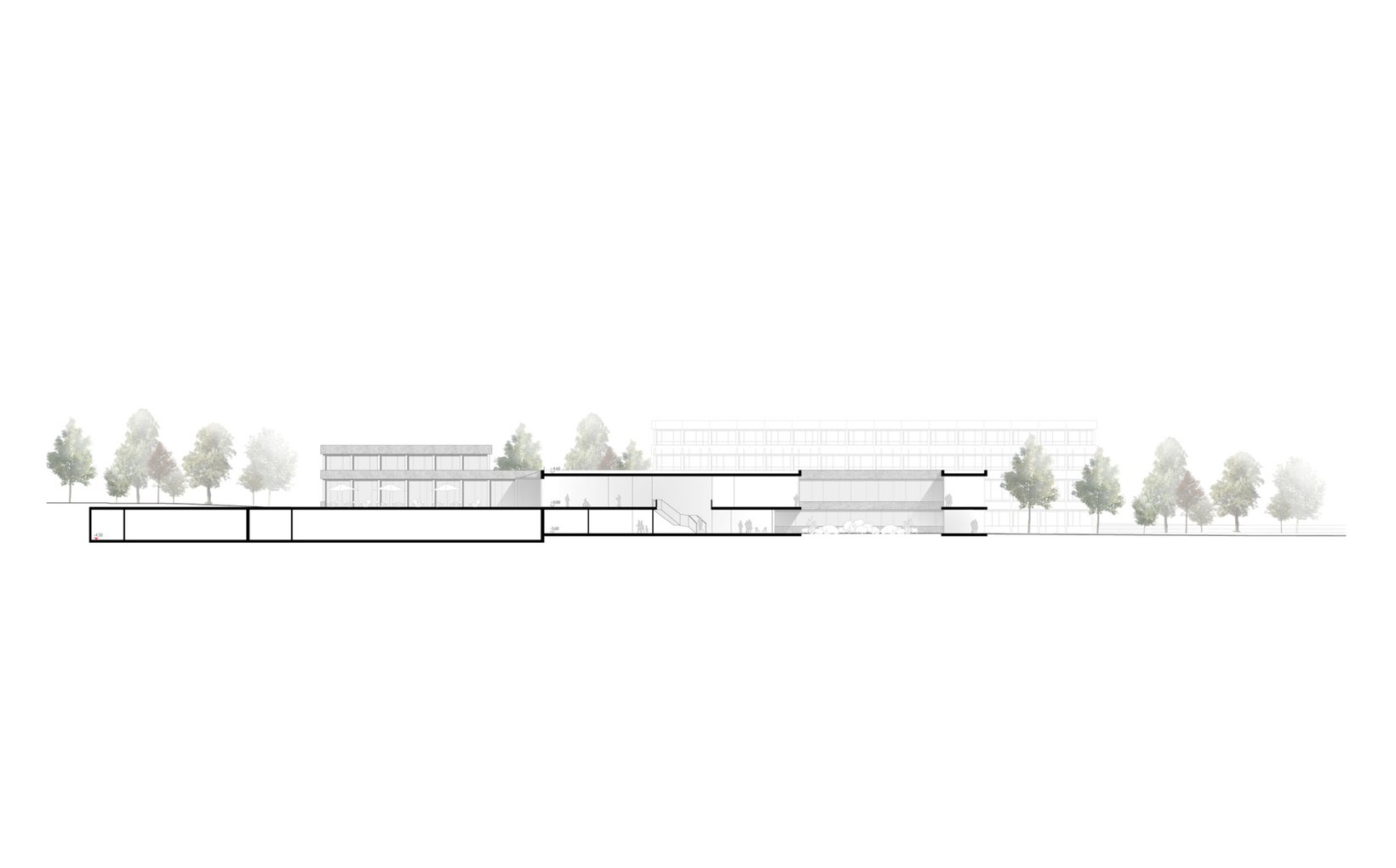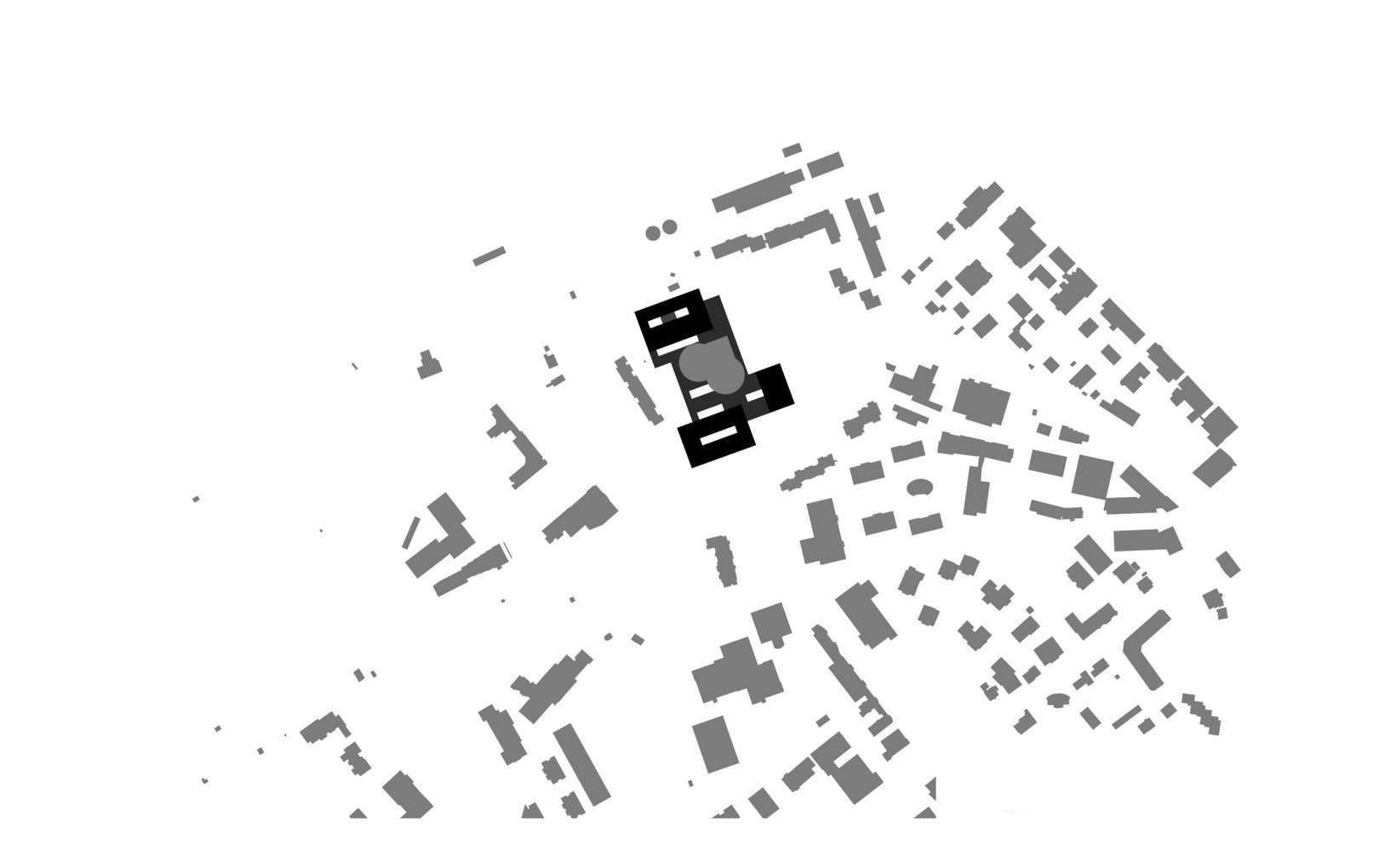 Ziel: Mit den beiden Ergänzungsneubauten im Norden und Süden und der vorgesehenen Fassadenerneuerung soll der städtebauliche Auftritt gestärkt werden. In der neuen räumlichen Disposition führen die beiden rechteckigen Baukörper die raumbildenden Baulinien weiter und ergänzen die zentrale Sonderform der vorhandenen Baustruktur.