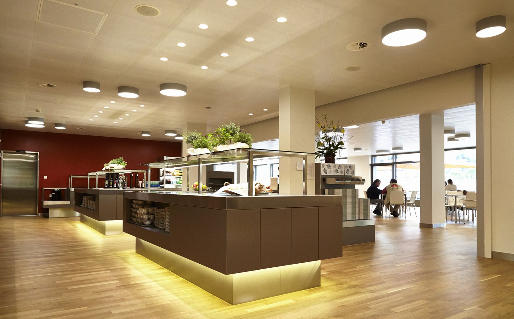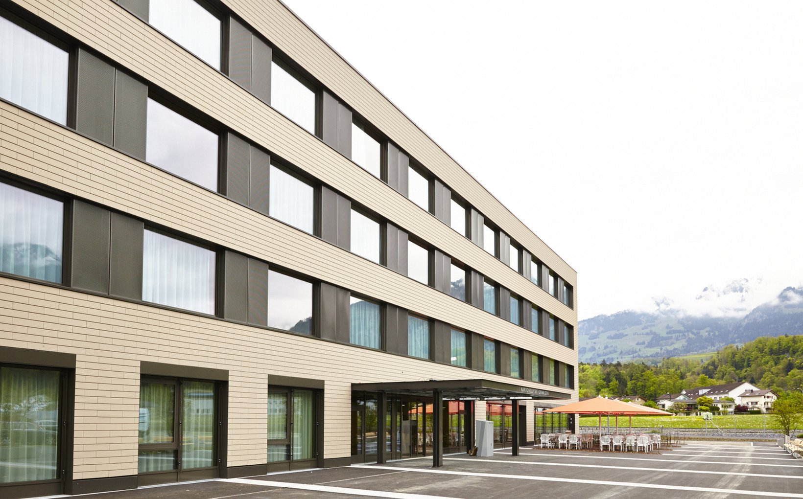 Der Neubau des Bettentraktes ist dem Spital vorgelagert und verleiht dem Spital eine neue Präsenz. Der neue Spitalbauteil ermöglicht einen freundlichen und effizienten Empfang, eine prozessoptimierte Administration sowie dynamische Abläufe. Die Cafeteria im Erdgeschoss kann dank hochmoderner Küche und Freeflow bedürfnisorientiert betrieben werden. OG 1 und OG 2 werden durch die Bettenstationen der Chirurgie und der