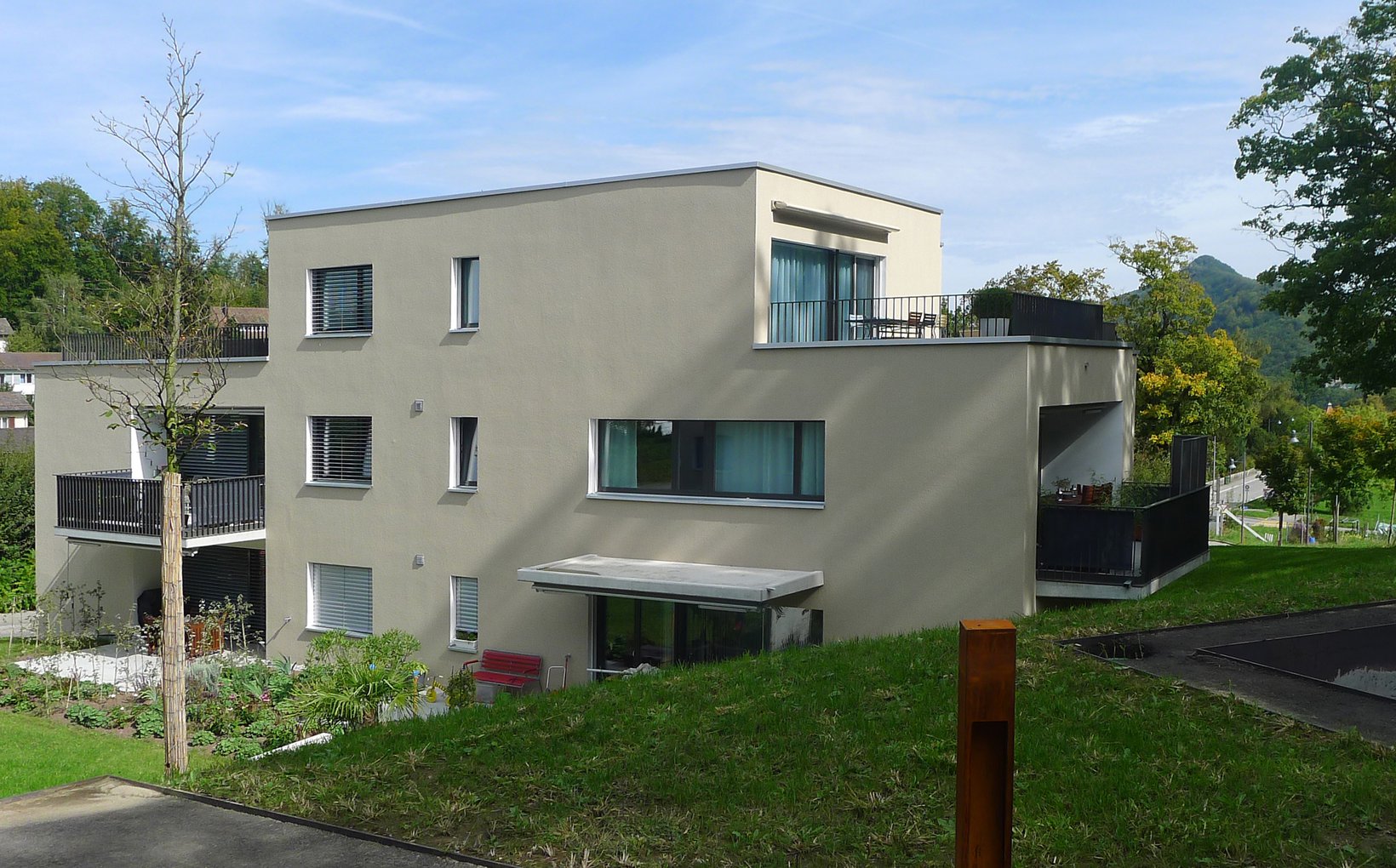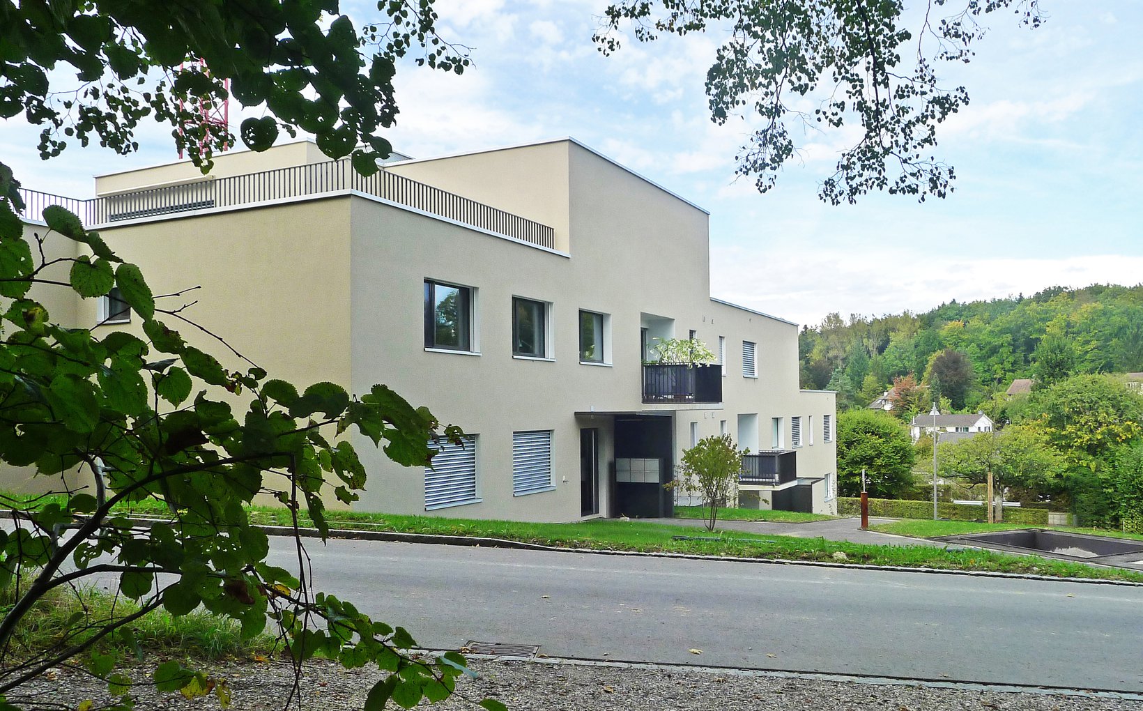 Problemstellung: Hohe städtebauliche Ansprüche der Stadt Baden, Bauen an schwieriger Nordhanglage, Integration einer Einstellhalle.