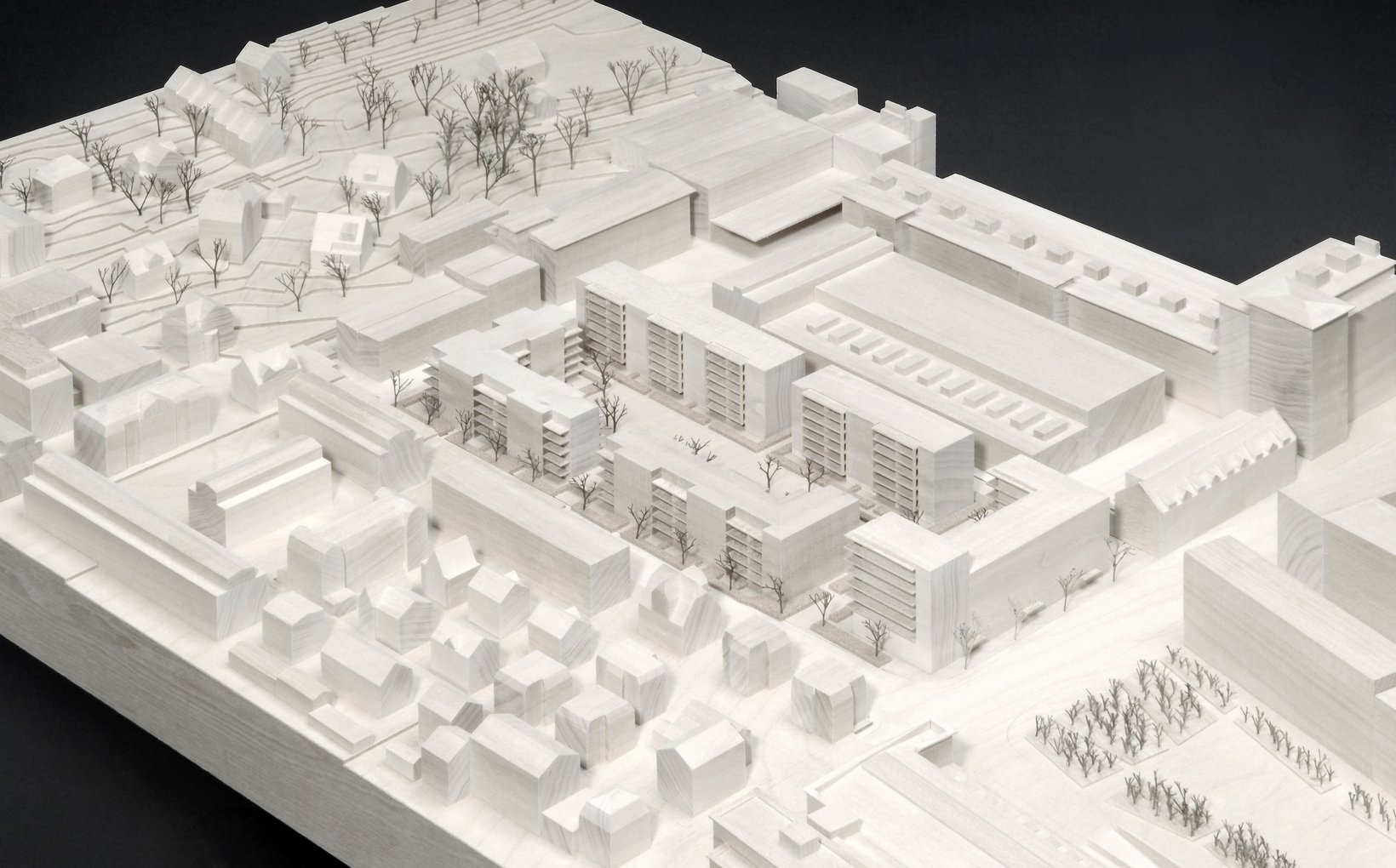 Problemstellung: Blockrandbebauung bewusst durchbrechen und mit dominantem Kopfbau zur Bruggerstrasse hin ein starkes städtebauliches Zeichen setzen.