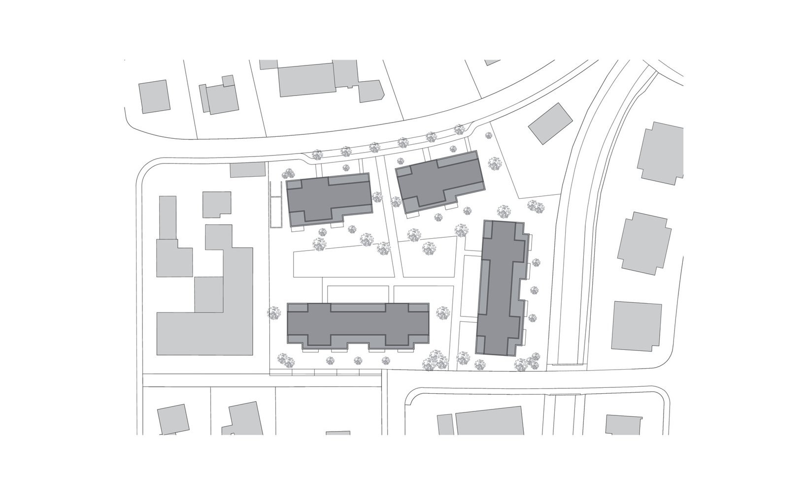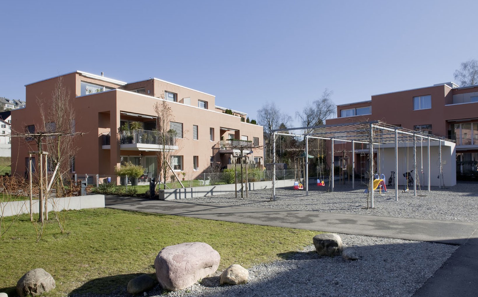 Problemstellung: Einerseits soll die Überbauung um einen gemeinsamen Aussenraum eine starke Identität finden, anderseits städtebaulich durchlässig sein, entsprechend der umgebenden Körnung.