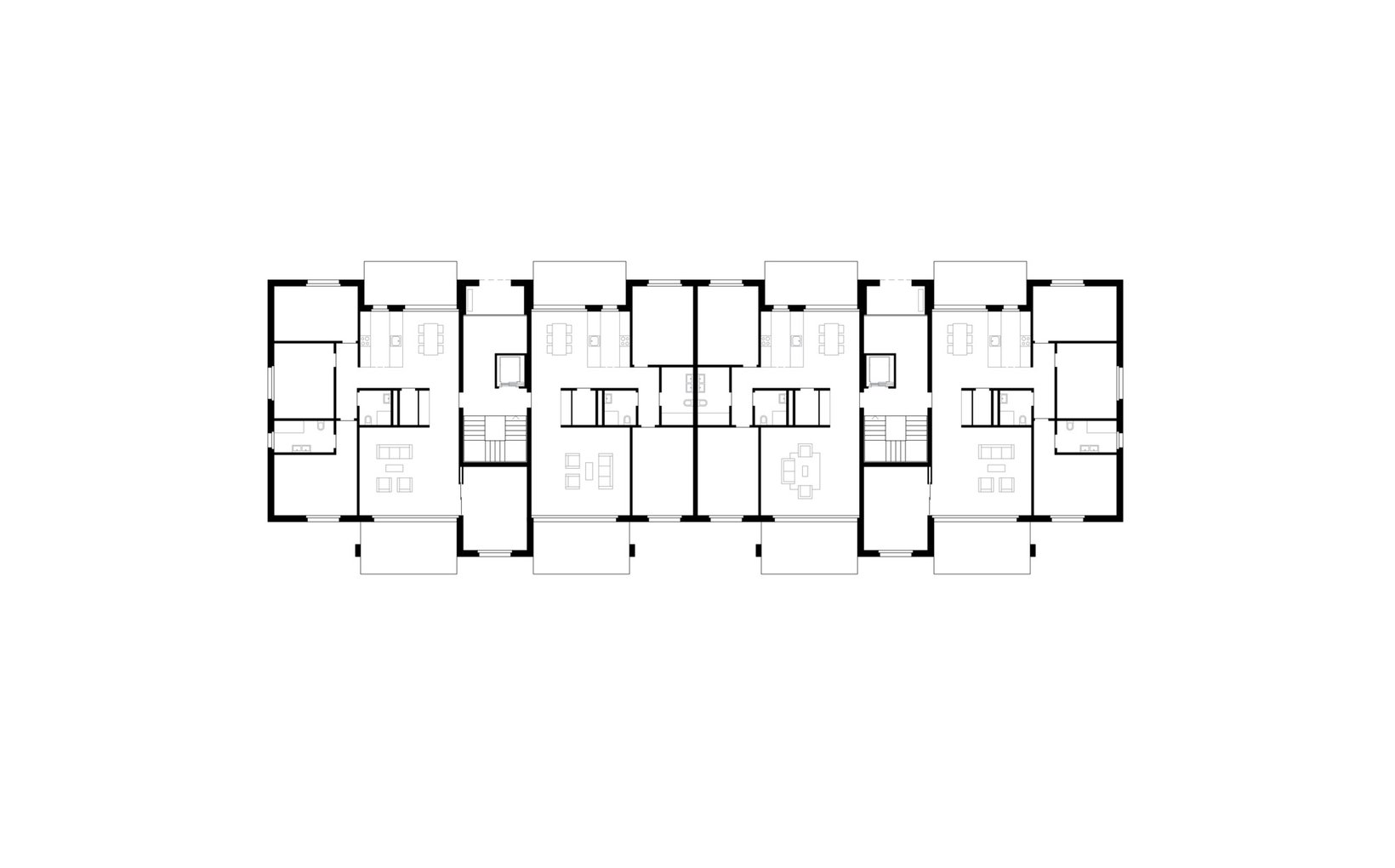 fsp: Zwei unterschiedliche Grundrisstypen: Die zwei Häuser entlang der Reppischtalstrasse enthalten Wohnungsgrundrisse, welche mit dem Wohn-/Essbereich gegen Süden und in den Hof zeigen, die Schlafräume sind nach Norden ausgerichtet. Hier wird je eine Maisonettewohnung angeboten, welche mit ihrem direkt angeschlossenen Keller wie ein Einfamilienhaus funktioniert. Die Hauptcharakteristik der zwei Häuser an der Gartenstrasse sind durchgehende Wohn-Esszonen mit je einem Balkon bzw. Sitzplatz an deren Ende. Durchgehende Grundrisse bringen viel Tageslicht in die Wohnungen und lassen die Bewohner am Leben in den unterschiedlich gestalteten Wohnhöfen teilhaben. Die Attikawohnungen besitzen ebenfalls grossflächige Terrassen. Alle Häuser sind im Untergeschoss direkt an die Tiefgarage angebunden und bieten viel Kellerraum an.