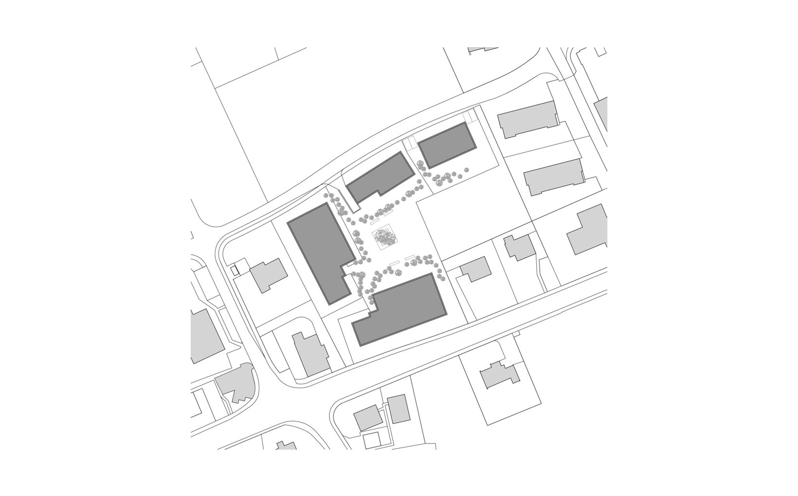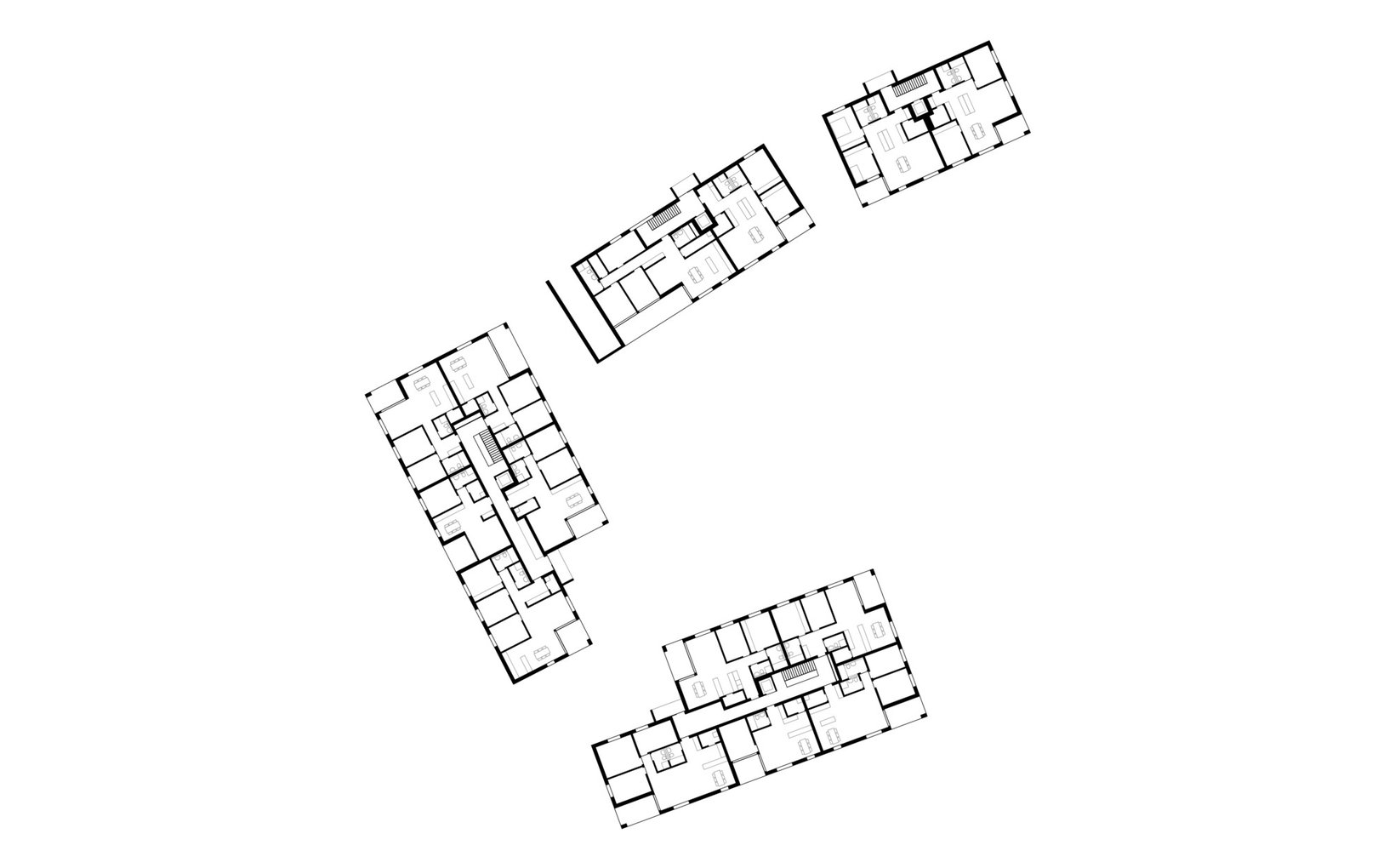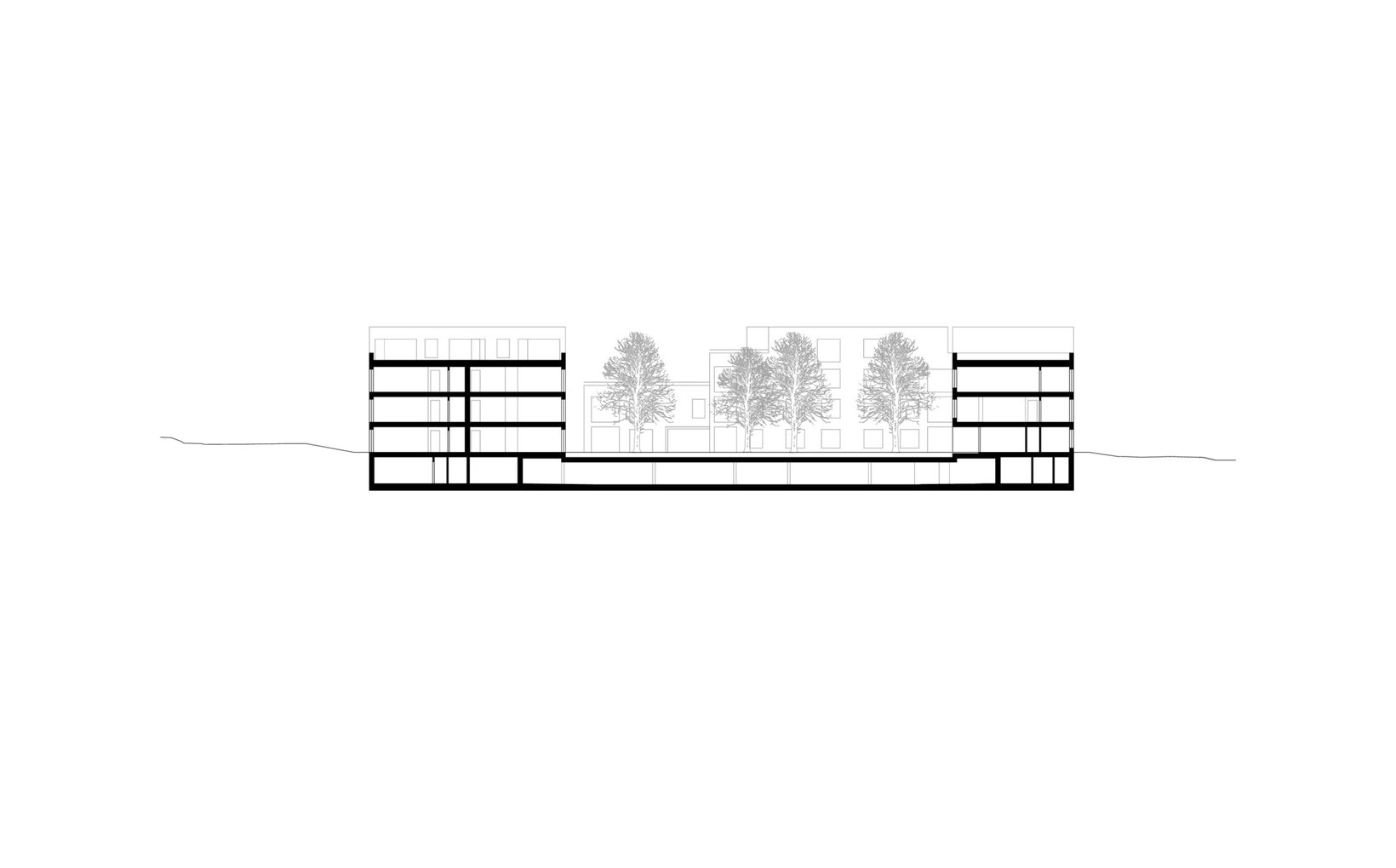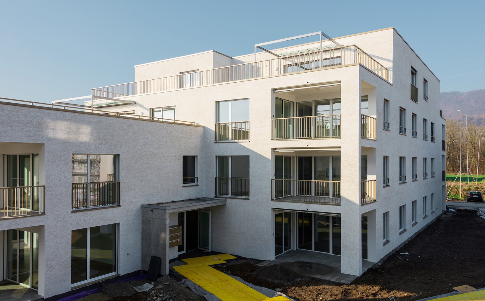 fsp: Vier Baukörper mit unterschiedlicher Volumetrie bilden eine Einheit und fügen sich in den heterogenen städtebaulichen Kontext ein. Die Gebäude sind entlang der Parzellengrenzen angeordnet wodurch ein Hof entsteht, welcher das Zentrum der Überbauung bildet. Durch die Höhenstaffelung der Häuser werden die Volumen massstäblich in der Horizontalen als auch in der Vertikalen gegliedert und es ist möglich die 51 Wohnungen trotz der hohen Dichte optimal zu belichten. Sämtliche Wohnungen verfügen über einen attraktiven Aussenraum, die meisten davon sind zweiseitig orientiert. Die unterschiedlichen Bauvolumen sind mit klar gegliederten und dennoch abwechslungsreichen Grundrissen bestückt und bieten eine grosse Auswahl an Wohnungen für die zukünftigen Mieter.