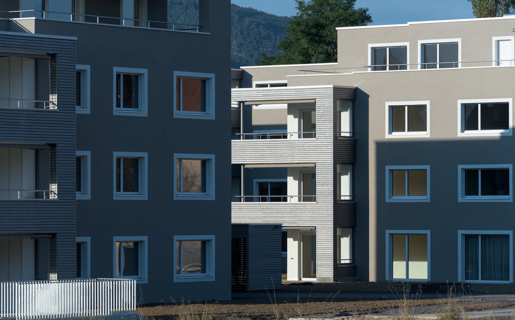 Ziel: Basierend auf einem Gestaltungsplan wurde eine Wohnüberbauung mit 10 Mehrfamilienhäusern und insgesamt 67 Wohneinheiten realisiert. Das Areal ist in drei parallel verlaufende Bebauungsstreifen organisiert. Abgestufte Gebäudehöhen reagieren auf die umliegende Bebauungsstruktur. Ziel war es, ein einheitliches, architektonisches Gesamtbild zu erzeugen und durch eine gezielte Positionierung der einzelnen Baukörper eine optimale Besonnung und Aussichtslage für die einzelnen Häuser zu erreichen.