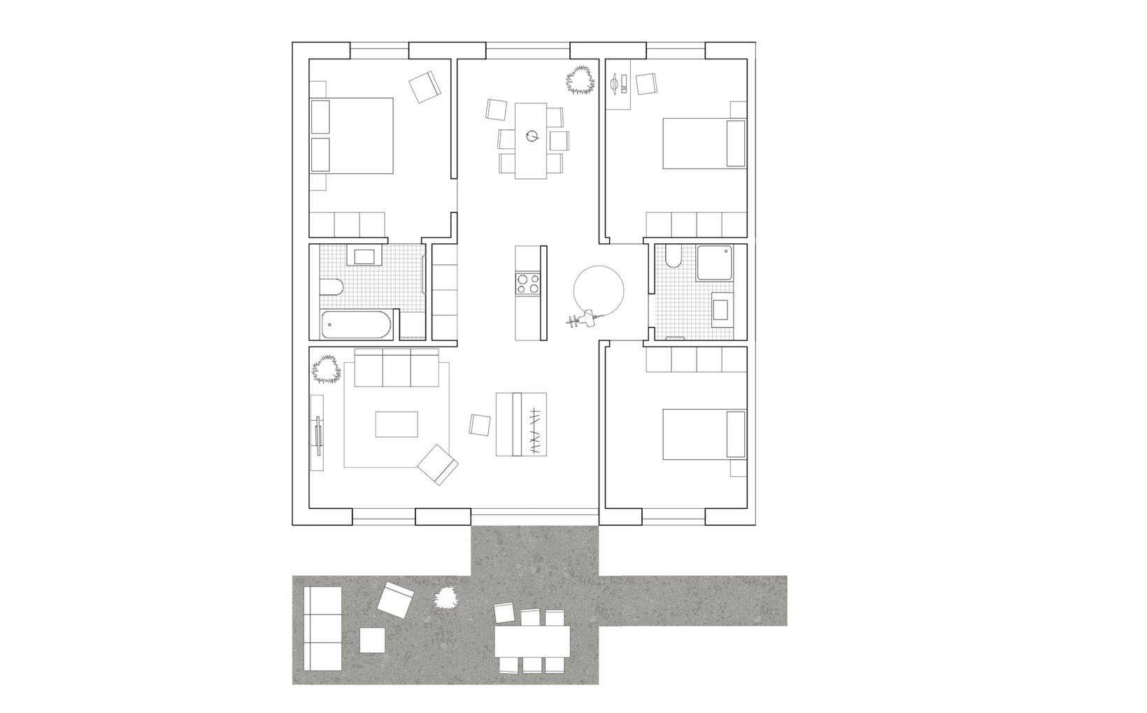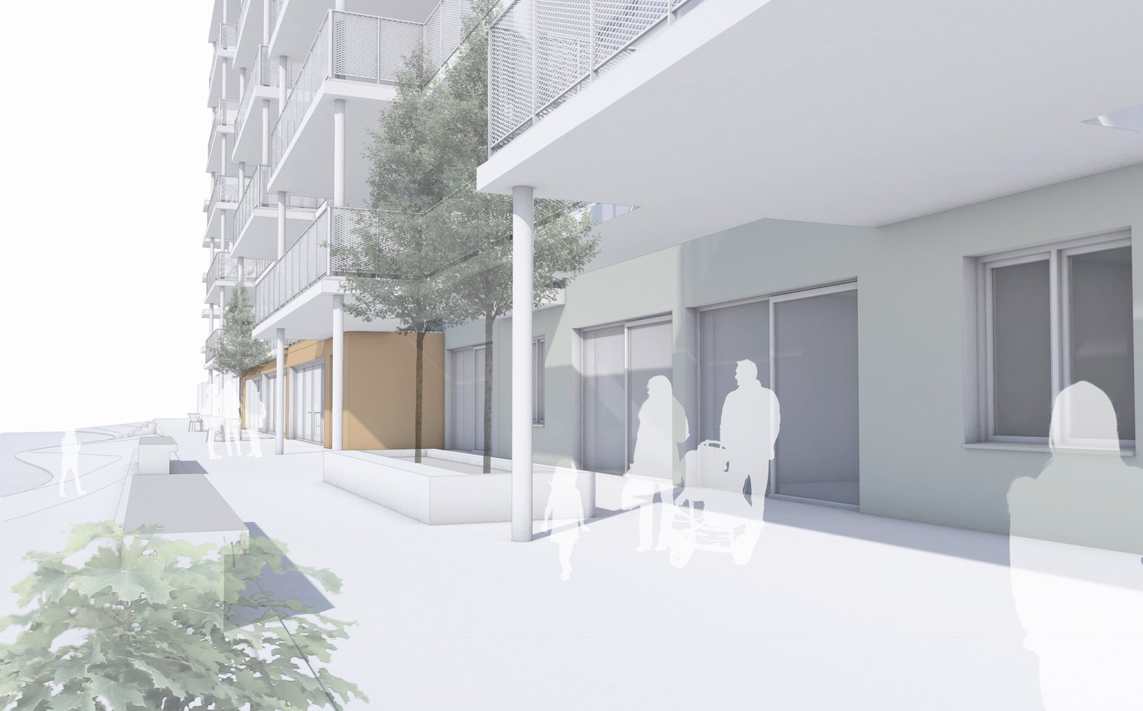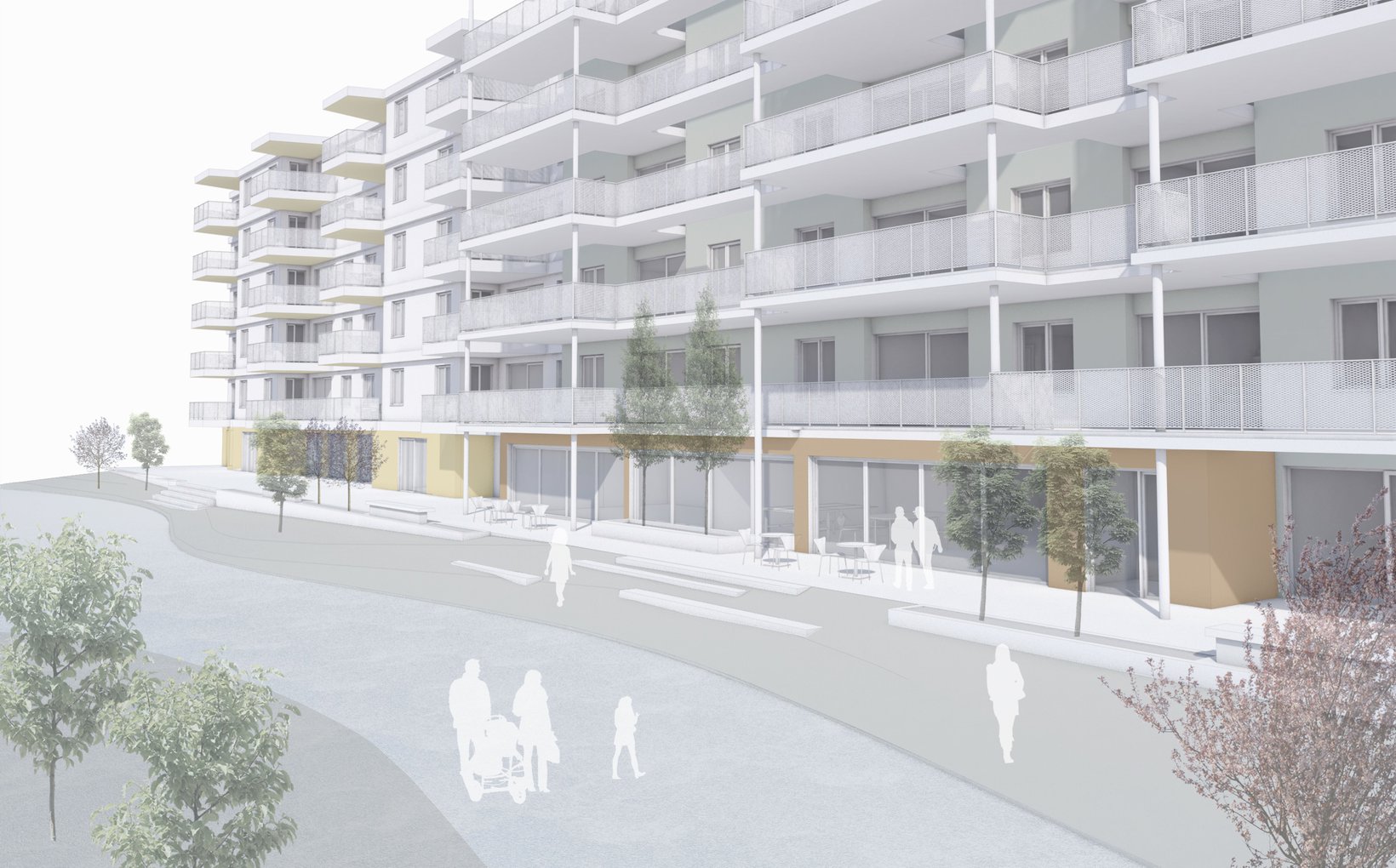 fsp: Innert kürzester Zeit entstand eine Zielgruppenanalyse und eine Adaption des vorhandenen Entwurfs des Richtprojektes Quartierplan. Der neue Vorschlag bricht den langen Baukörper im Norden auf 3 neue Gebäude herunter, mit individueller Ausgestaltung der Grundrisse und Aussenräumbezüge auf die Zielgruppen.